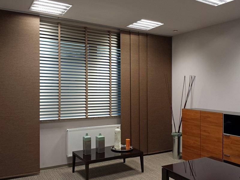 minőségű fehér műanyag sínből, amelyekben panelkocsik és panelkocsikon található szövet lamellákból állnak össze. A vezérlés kézi - húzza a szövetet.